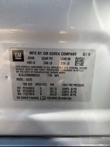 VIN (Vehicle Identification Number): KL4CJ2SB8KB884324