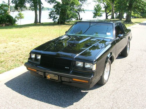1987 BUICK GRAND NATIONAL WITH T TOPS 35,000 ORIGINAL MILES,2ND OWNER-231 V6 TURBO-49MM TURBO-50LB INJECTORS-FACTORY LOCATION STRECTED INTERCOOLER-ALCOHOL INJECTION-WALBRO FUEL PUMP WITH HOT WIRE KIT-TURBO TWEAK CHIP-HEADS PORTED AND POLISHED-COMP CAMS CAMSHAFT-3000 STALL CONVERTER-MANIFOLDS,DOWN PIPE AND EXHAUST SYSTEM ARE CERAMIC COATED-CAR HAS BEEN TO TRACK 1 TIME BEST PASS WAS 11.41@117. HAS COLD AC-PAINT IS BEAUTIFUL(HAS WON MULTIPLE CAR SHOWS) INTERIOR IS IN EXCELLENT CONDITION-WELD WHEELS WITH 276/60/15 MICKEY THOMPSON DRAG RADIALS(I DO NOT HAVE FACTORY WHEELS) CAR RUNS AND DRIVES EXCELLENT ANY QUESTIONS PLEAE CALL OR TEXT 609-440-3989