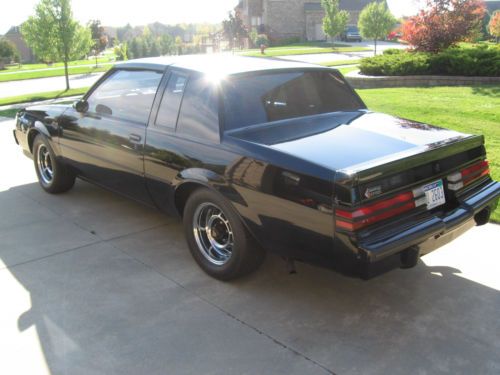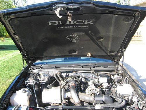 I am the first owner of this all original great condition 33K mileage 1987 Buick Regal Grand National. I have never modified or added anything except for that I have replaced the brake master cylinder, tires, and battery. It has T-tops with covers (as seen in the picture of the trunk). It is in original condition. Original paint is in great condition. No dings, dents, scrapes, or scratches. Underside of car has no rust and rocker panels are like new condition. Wheels and tires are in great condition. Tinted Windows. It has all options except for power antenna, power drivers seat, and security system. Car has never been driven hard or raced. I have taken great care of this car from the beginning. Runs and looks great. I have all original paperwork. Headliner behind the T-tops is starting to sag due to age. There is a small oil leak on the passenger side of the engine. Clear title in hand. Local pick-up only. No delivery.