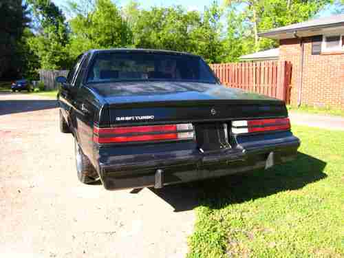 Up for bid is a unrestored 1984 Buick Regal T-Type. It is equipped with the 3.8 liter turbo engine and 2004r transmission. The rear end gears has been changed to a 373 ratio. Engine and trans runs very strong and quiet . Headliner has been replaced Options on vehicle as follows : a/c and heat , power windows , power locks, tilt steering column, power steering, cruise control, power drivers seat, cd player, 4 new speakers front and rear, duel cooling fans , center console pod gauge ( temp & volt ), 2 gauge pod on "A" pillar ( boost & tach. ). the brakes are good and the tires are fair I sold this car many years ago , and it so happens that I got the chance to buy it back again, so I did. Now for the bad : trunk needs paint , header panel cracked ( see pic ), hood damaged ( see pic ), right rear quarter panel paint cracking ( see pic ),The Rest Of The Car Is Shinny turbo seals leaking internally and has slight shaft play,( if vehicle is idling for long time when you step on the gas it blows blue smoke out exhaust from turbo seals ). digital tach. and boost gauge are inaccurate ( very common on these cars ) missing the r/front center cap. Please understand this is by no means a #10" car , but you can drive it everyday while restoring it yourself. It still gets lots of "thumbs up " This is a everyday driver car. The ONLY reason I am selling is it is to catch up on bills . If I find another way to do this I will be keeping it . This is your chance to own a piece of an American Icon . There are not many of these left around . So get it while you can This vehicle is sold AS IS , No Warranty Expressed or Implied, All Sales Final I don't want to sound rude , please take into consideration, that this is a old car it has a few bumps and bruises. It is a Survivor You Can DRIVE IT HOME I constantly get a Thumbs UP every where I go with it. Thanks and Happy Bidding