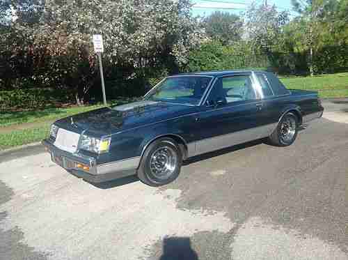 This is a 1987 Buick T-Type runs very good and strong. The car has no rust at all and has four new Michellin tire's.the entire engine is factory for the exception of the air Filter and i do have the Factory air Filter,everything on the car work except for the A/C,the Compressor goes on and off, could be low on Freon??.the Body on the car is very straight with no dents or scrathes.If you are intrested feel free to give me a call or text me at 561-291-4478 David. one owner car