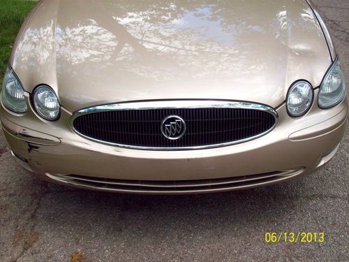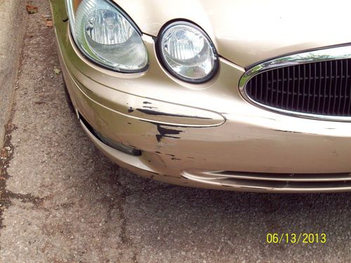 This is a beige 2005 Buick Lacrosse with 126,000 miles. It has a V6 3.8 engine. The rack and pinion needs to be replaced at some point, but there are no other mechanical issues. It has a new battery that is less than a month old. Other than a whirling noise from the rack and pinion, the car runs great. The whirling noise isn't even noticeable unless you're turning the wheel. This was my sister's first car; she acquired a few light scratches and dents and she even managed to hit a pole at one point, so there is a crack near one of the headlights. Luckily I got ahold of the car before she could do more damage! :-) Other than these minor cosmetic issues, it runs great, so it really is a steal. Take a look at the pics and let me know if you have any questions. Also, if your feedback score is less than 10, please contact me personally. Thanks!