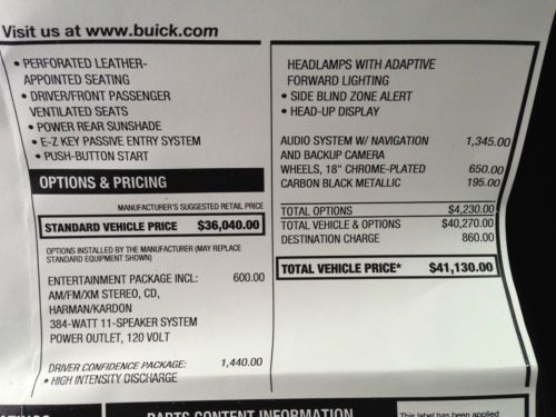 2014 ebony cloth ecotec engine lifetime powertrain warranty(US $31,912.00)