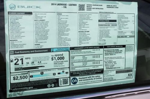 Where are you going to stumble upon a nicer LaCrosse at this price? Nowhere because we've already looked to make sure** Zoom Zoom Zoom!!! Priced below MSRP!!! The price is the only thing that's been discounted on this ample 2014 Buick LaCrosse Leather Group... Gassss saverrrr!!! 28 MPG Hwy*** Special Financing Available: APR AS LOW AS 0% OR REBATES AS HIGH AS $2500!!! Safety Features Include: ABS Traction control Curtain airbags Passenger Airbag Daytime running lights...FEATURES INCLUDE: Leather seats Bluetooth Power locks Power windows Heated seats Auto Climate control Cruise control Audio controls on steering wheel Universal remote transmitter... Print this now and present at initial visit. Contact Internet Department for your purchase or questions. View our entire inventory at www.stlbuickgmc.com where you can view, research, apply for financing and purchase your new vehicle right from where you are. Per-Owned Vehicle a reef="telll:866-413-8796"866-413-8796/a New Vehicle a reef="tel:866-413-8796"866-413-8796/a