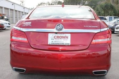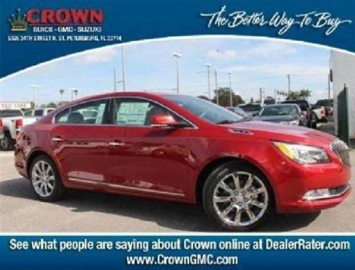 , Before Discount:$40,590.00, Dealer Discount:($2,128.00), Cash Incentive:($1,000.00), Bonus Cash:($500.00), Special Discount:($500.00), Internet Price:$36,462.00, Total Savings:($4,128.00)!BACK-UP CAMERA, LEATHER, BLUETOOTH, MP3 Player, KEYLESS ENTRY, 28 MPG, SAT RADIO, The Buick LaCrosse has been totally restyled for 2014. Exterior design tweaks alter the sedan's appearance while the interior gets improved seating and simpler, intuitive dashboard controls. Exterior styling changes are focused on the front and rear of the vehicle. The headlights and grille are bolder, and all LaCrosse models come with active grille shutters that close at high speeds to improve aerodynamics. The interior features ice-blue ambient lighting and warm wood tones to surround you in style. Like others in Buick's lineup, the 2014 LaCrosse comes with the IntelliLink infotainment system with tablet-like interface. Some high-tech safety features include Forward Collision Alert, which senses when you are getting too close to the vehicle in front of you, and Adaptive Cruise Control that automatically adjusts vehicle speed to help maintain your selected driving distance. The LaCrosse also features QuietTuning technology that blocks and absorbs outside noise for a quieter ride. Choose from the standard 2.4L engine with eAssist Technology, or the powerful 3.6L V6 engine with variable valve timing. Come see why the 2014 Buick LaCrosse is set apart with refined luxury, confident styling, and advanced performance. Crown Automotive Group serving Tampa Bay Florida offers great low prices, rebates and incentives for new Group & used Group cars, vans and SUVs to all of our neighbors in St. Petersburg, Largo, Clearwater, and Pinellas Park. Our Expert Service & Parts staff assist our Florida customers keep their Group vehicles in great shape.