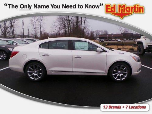 The Buick LaCrosse has been totally restyled for 2014. Exterior design tweaks alter the sedan's appearance while the interior gets improved seating and simpler, intuitive dashboard controls. Exterior styling changes are focpre-owned on the front and rear of the vehicle. The headlights and grille are bolder, and all LaCrosse models come with active grille shutters that close at high speeds to improve aerodynamics. The interior features ice-blue ambient lighting and warm wood tones to surround you in style. Like others in Buick's lineup, the 2014 LaCrosse comes with the IntelliLink infotainment system with tablet-like interface. Some high-tech safety features include Forward Collision Alert, which senses when you are getting too close to the vehicle in front of you, and Adaptive Cruise Control that automatically adjusts vehicle speed to help maintain your selected driving distance. The LaCrosse also features QuietTuning technology that blocks and absorbs outside noise for a quieter ride. Choose from the standard 2.4L engine with eAssist Technology, or the powerful 3.6L V6 engine with variable valve timing. Come see why the 2014 Buick LaCrosse is set apart with refined luxury, confident styling, and advanced performance.DRIVER CONFIDENCE PACKAGE includes (UKC) Side Blind Zone Alert with Lane Change Alert (UFG) Rear Cross-Traffic Alert (UFL) Lane Departure Warning (UEU) Forward Collision Alert (UV6) Head-Up Display (T3U) front halogen fog lamps with and (T4F) Xenon High-intensity Discharge (HID) articulating headlamps, DRIVER CONFIDENCE PACKAGE #2 includes (KSG) adaptive cruise control (UGN) Automatic Collision Preparation and Safety Alert Seat, ENGINE 3.6L SIDI DOHC V6 VVT (304 hp [226.7 kW] @ 6800 rpm 264 lb-ft of torque [356.4 N-m] @ 5300 rpm) (STD), SUNROOF POWER OVERSIZED, TRANSMISSION 6-SPEED AUTOMATIC ELECTRONICALLY CONTROLLED WITH OVERDRIVE includes Driver Shift Control (STD), WHITE DIAMOND TRICOAT, Auto-Dimming Rearview Mirror.Includes $1500 Buick Conquest and Pricing includes destination, optional equipment and reflects manufacturer incentives. We pride ourselves in having an upfront, completely transparent purchase process. Nothing hidden and no surprises! Our goal, to create an automotive buying experience that will last a lifetime. Our hope, you will share your Ed Martin Experience with others. Sincerely, Ric McCoy General Manager
