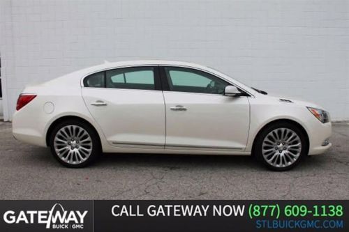 Ready for anything!! This gas-saving Vehicle will get you where you need to go* This 2014 Buick LaCrosse Premium II won't last long at $3192 below MSRP* If you've been dreaming about just the right Sedan well stop your search right here! Special Financing Available: APR AS LOW AS 0% OR REBATES AS HIGH AS $1500! Safety equipment includes: ABS Traction control Curtain airbags Passenger Airbag Signal mirrors - Turn signal in mirrors...It has nice features like: Leather seats Navigation Bluetooth Power locks Power windows Heated seats Auto Climate control Audio controls on steering wheel Universal remote transmitter... Print this now and present at initial visit. Contact Internet Department for your purchase or questions. View our entire inventory at www.stlbuickgmc.com where you can view, research, apply for financing and purchase your new vehicle right from where you are. Per-Owned Vehicle a reef="telll:866-983-0733"866-983-0733/a New Vehicle a reef="tel:866-983-0733"866-983-0733/a