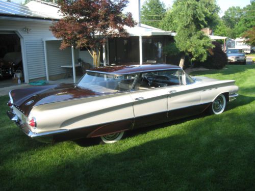 Hello all. I am listing a very rare 1960 Buick Lesabre 4 door flat top for a NO RESERVE AUCTION. This car is part of my dad's collection which is being sold due to illness. Car has 74,873 original miles. Rust free original California car with original sales paperwork. Car was purchased originally in Oxnard California. Car offers the 364 2 barrel V8. This Buick has power steering and brakes as well as radio. Fender skirts adorn the lower quarters. Clear windows all around. Engine compartment has been detailed and presents very well. Car has had a recent two-tone professional clear coat paint job done in Tahitian Beige and Cordovan. (both correct 1960 colors). A classy amount of hand pinstriping adorns the body lines from front to rear. Interior is a combination of original and new. No tears or rips on the interior. Excellent mechanics, Car runs strong and smooth. All manuals and service books as well as newer car cover included with sale. Car is located in central New Jersey and can be shown if interested party can work with me. This is a very nice 54 year old car that runs well and is certainly nice enough to enter in your local car show or cruise night. Starting price is very fair considering rarity and over all cleanliness of car. Please keep in mind that the starting price is our reserve so we will not be entertaining lower offers. Car is being kept in a heated garage. Please feel free to ask questions or arrange for a showing and I will do my best to accommodate in a timely manner. Thanks for the look!!!!