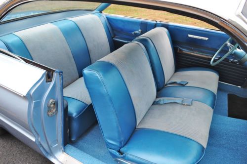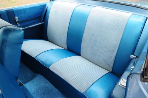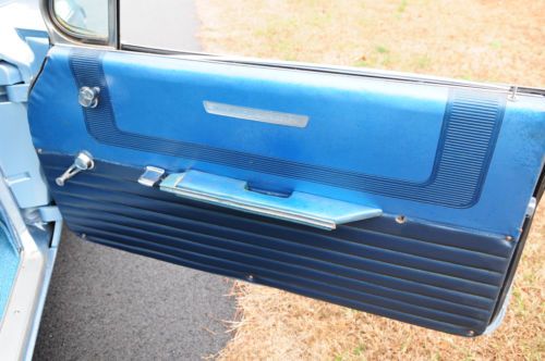 finished in a fabric and vinyl combination. Door panels are original to the car and show some minor wear. Padded dash has been also