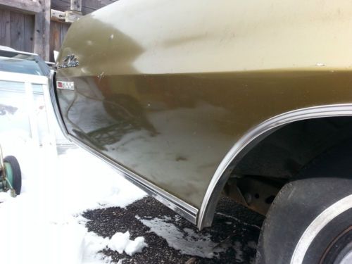 It's time to sell my second car. I have held on to it for over 10 years. The car has original paint and Nice interior. Unfortunately the original 350 4 barrel threw a rod and I put in a 455 out of a 73 Buick. I never finished the swap and the car has sat for the last 8 years or so. I realize I will never have the money to put into the car to keep it and I have lost my inside storage. The car has a full tank of old gas and needs exhaust and re timed to run. The brakes still work the transmission was great the last I drove it. The windshield has a small crack in one corner and leaks a small amount. The car is straight and rust free. Look at the pics you will not find a nicer car to put back on the road for anywhere close to the price I'm asking. I want to see it go to a good home. The air cleaner pictured is the original ansdstill reads 350/4.