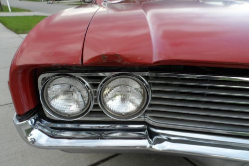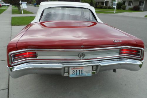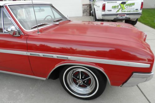 I HAVE FOR SALE A VERY ORIGINAL AND NEARLY RUST FREE 1964 BUICK SKYLARK CONVERTIBLE THAT SPENT MOST OF IT'S LIFE IN VERY DRY SOUTHERN IDAHO. IT HAS THE ORIGINAL 300 BUICK V8 WITH ALUMINUM INTAKE MANIFOLD AND ORIGINAL AUTOMATIC TRANSMISSION. IT STILL HAS THE ORIGINAL CARBURETOR WITH TAG ON IT. IT HAS POWER STEERING, POWER BRAKES, POWER CONVERTIBLE TOP AND VERY RARE DUAL REMOTE OUTSIDE MIRRORS. MUCH OF THE PAINT IS ORIGINAL EXCEPT FOR THR BACK PART OF THE CAR. THE PREVIOUS OWNER HAD HIS INSURANCE COMPANY REPAINT THE REAR QUARTERS AND TRUNK, RE CHROME THE REAR BUMPER, RESTORE THE SIDE MOLDINGS AFTER SOMEONE BUMPED INTO THE CAR IN A PARKING LOT, THERE ARE NO SIGNS OF THE DAMAGE. THE ORIGINAL PAINT LOOKS VERY GOOD BUT DOES SHOW SHOW IT'S AGE WITH SOME FADING AND CHECKING. THE BODY, FRAME AND FLOOR PANS ARE RUST FREE. THERE IS ONE VERY SMALL RUST SPOT ON THE DRIVER'S SIDE TRUNK PAN NEAR THE INNER WHEEL HOUSE. IT STILL HAS TWO ORIGINAL T-3 HEADLIGHTS ON THE DRIVER'S SIDE. THE TOP AND REAR WINDOW ARE IN EXCELLENT CONDITION, THE INTERIOR IS MOSTLY ORIGINAL AND IN EXCELLENT CONDITION FOR IT'S AGE. THE FRONT SEAT WAS RE UPHOLSTERED ABOUT 15 YEARS AGO EXACTLY LIKE ORIGINAL AND IS STILL IN EXCELLENT CONDITION. THE CARPETS WERE ALSO REPLACED AT THE SAME TIME. THE ORIGINAL, DATE CODED CONVERTIBLE TOP BOOT IS IN EXCELLENT CONDITION. THE CAR DRIVES EXTREMELY WELL, SMOOTH WITH TIGHT STEERING, SHIFTS PERFECTLY AND HAS GOOD BRAKES. THE ENGINE RUNS VERY SMOOTH, HAS GOOD POWER BUT IS PROBABLY DUE FOR A REBUILD. SMOKES A LITTLE FROM SITTING FOR SEVERAL YEARS. HAS SLIGHT TICK FOR 3-4 SECONDS ON START UP AND AT 45-50 MPH. EVERYTHING IS WORKING EXCEPT THE DIRECTIONAL SIGNALS, FAN BLOWER MOTOR AND THE POWER TOP NEEDS A NEW MOTOR OR SWITCH. FUEL GAUGE, HORN, RADIO, INTERIOR LIGHTS ALL WORK. I HAVE THE ORIGINAL OWNERS MANUAL AND ORIGINAL AM RADIO FOR THE CAR. PLEASE CALL ME AT 208-640-3246 IF YOU HAVE QUESTIONS OR NEED ADDITIONAL PICTURES. THANK YOU FOR LOOKING