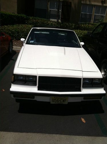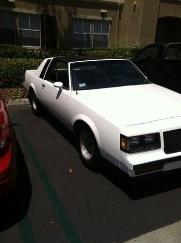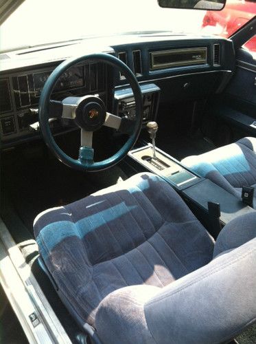 1987 buick T type has transmission with shift kit and engine is stock with the exception of te44 turbo and hotwire kit . transmission shift nice and firm and vehicle has lots of power . the engine ticks after warm and I have not figured it out a couple of grand national people were telling me it could me the Camshaft synchronizer . it doesn't effect drivability at all or power the car still drives normal vehicle has a very tight suspension and is lowered on moroso springs it drives great and handles perfectly . the interior is blue and in good shape . any questions give me a call at 302-250-3210 ask for T.j . the only reason im selling is I have 5 cars and I want to down size also selling a built 1991 mustang Lx . VEHICLE IS LOCATED IN SAN DIEGO CALIFORNIA . All metal on body is solid there isn't any rusted areas.