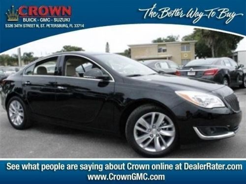 , Before Discount:$36,575.00, Dealer Discount:($1,703.00), Special Discount:($400.00), Internet Price:$34,472.00, Total Savings:($2,103.00)!BACK-UP CAMERA, LEATHER, BLUETOOTH, MP3 Player, KEYLESS ENTRY, 30 MPG, HID HEADLIGHTS, SAT RADIO, TURBOCHARGED, One look at the 2014 Buick Regal and it's clear: the new generation of luxury cars has arrived. Its flowing lines and sculpted body were precisely designed to make wind an ally, showcasing exactly what you can learn from hours in a wind tunnel. Newly designed headlamps with jewel-like LED signature lighting and integrated LED tail lamps add style as well as enhanced visibility. Step inside and see for yourself; Regal's penchant for good looks applies inside too. With seating for five, this sport sedan offers the comforts that turn driving into a joy. From the moment you start it up, it's all about you. Relax in an interior ergonomically designed for the driver. Get comfortable with a 12-way power driver's seat. The Regal offers elegant ebony interior with leather-appointed seating, heated front seats, ebony trim, and piano black accents. Your kind of luxury means being able to choose the Regal that's right for you. The standard 2.4L ECOTEC VVT 4-cylinder engine with fuel-efficient eAssist technology delivers sport-injected performance and precise, agile handling. Regal Turbo and GS' 2.0L intercooled turbocharged engine delivers 259-hp and 295 lb-ft of torque. Enhance your driving experience with technology engineered to keep your focus on the road. Regal's standard 4.2-inch (8 inch on the GS) Color Touch radio features Buick IntelliLink???an Internet-connected, Bluetooth-enabled infotainment and navigation command center. IntelliLink is also available with voice-control, as well as a premium harman kardon 5.1 Matrix surround sound system. All are seamlessly integrated to help you make the most of your ride. Everything in Regal heightens your senses, including your sense of well-being. That's why it features the latest restraint technology including double pre-tensioned front safety belts, a GM-patented pedal-release system, and side-impact protection beams. Crown Automotive Group serving Tampa Bay Florida offers great low prices, rebates and incentives for new Group & used Group cars, vans and SUVs to all of our neighbors in St. Petersburg, Largo, Clearwater, and Pinellas Park. Our Expert Service & Parts staff assist our Florida customers keep their Group vehicles in great shape.