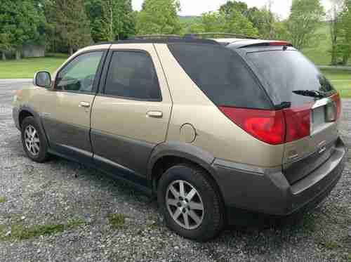 THIS IS A 3 DAY AUCTION ONLY!!!!! Up for bids is a 2002 Buick Rendezvous AWD with 3rd row seating. This vehicle developed an oil leak at the sensor and the owner let the oil level get low and it messed up the bottom end of the engine. The engine will need replaced or the one that's in it can be repaired with a crank shaft kit. No other engine parts are damaged. The Buick has 142000 miles on it and it was being used everyday until the engine problem occurred. This vehicle has just had 4 new tires put on it right before the engine messed up so you know it was being driven daily. The tires are high dollar Cooper tires which are probably $150 each. I cannot tell you a lot about the vehicle as it came to me with this problem but as I said if it weren't a good SUV they would not have put that much in tires for it.It did run but the bottom end of the engine had noise. I pulled the oil pan off to see how bad the damage was and I have it and all the bolts to put it back. Just didn't see the need to reinstall it when it would have to come off again anyway. This Rendezvous is loaded with most every option you could get including the 3rd row seating and backup assist. The interior shows some wear but nothing major although it does need cleaning some. The exterior of this Buick is extra nice as its not all beat up or scratched very much. The paint shines good and the wheels are aluminum and will clean up nice. You can find these engines in most salvage yards very cheap as lots of GM vehicles had the same engine. Drop the engine in and you will have a great SUV for very little investment. The reserve is low and considering the vehicle condition you don't want to miss out on this deal. Remember it has 4 new tires on it which probably cost a total of $600 or more. Checkout my feedback as it is well over 500 and all positive so rest assure your dealing with an honest ebayer. You don't get great feedback like that if you lie and cheat people, I tell it like it is. PLEASE bid only if you are a serious buyer as it costs money to relist these items. I reserve the right to end the auction early as it is listed for sale locally also. Thanks for looking and good luck should you decide to bid on this great Buick Rendezvous. If you have less than 10 positive feedback you need to email me and assure me you are a serious bidder or I will cancel you bid. Sorry. Also this Buick has a very high retail book price when its repaired so the buy it now price I have is a steal. Don't miss out and remember this is a 3 DAY AUCTION.!!!!!