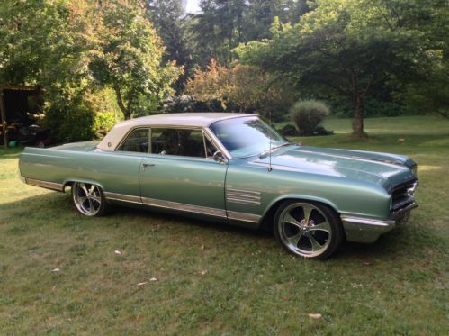 1964 Buick Wildcat. Restored inside and out. All new paint and gaskets. Metallic teal and white pearl top, beautiful color combination. All glass was removed and all new seals added. Interior was all done in black cloth and vinyl. New headliner, carpet, seats, door panels and they look amazing. New custom exhaust has a nice rumble to it. New Ridler chrome wheels and 20" wheels to give it a great stance. Runs and drives great. Lots of money spent to make it the beautiful show car you see today. Has air conditioning just needs charged for the season. One small scratch I rear tailpiece see picture. I have all the paint to have that small piece repainted. Other than that this is a rare beautiful car that you can drive anywhere. Vehicle is sold As Is with no implied warranty. Odometer reads 8,688 not sure of total mileage but car is very clean underneath and any issues on body was fixed when it was stripped all down and restored. Would look at a nice Camaros, chevelle, or interesting trades. Bid to win.