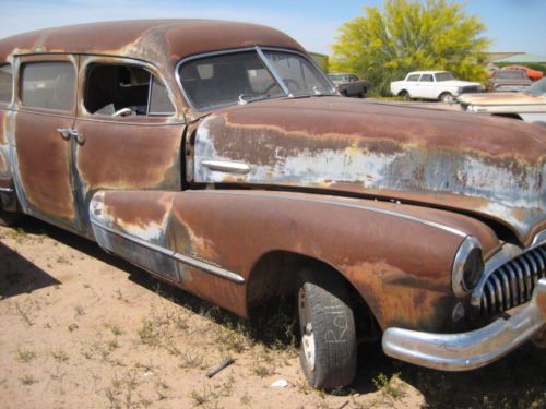 Here is a 1946 Buick Roadmaster Flxible hearse. There is no engine or trans. The L.F. fender is inside the vehicle. This is an Arizona classic car that is VERY UNIQUE and would make a GREAT hot rod! It needs total restoration. The pictures speak for themselves..