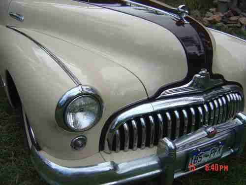 I've owned my 47 Roadmaster since 2000.I had Pauls grinding machine shop ( Denver Colorado) do all the machine work. They bored the motor 20 over,new pistons,rings,cam,lifters valves,oil pump waterpump. While the motor was out, I had the flywheel surfaced and a new cluch and through out bearing installed. The trans was gone through at this time along with the radiator. The starter and generator were both gone through and had brushes put in them. The motor has a luberfiner oil filter on (modle 200 S) All the hoses and belt were replaced with new.along with a new battery. I put a new master brake cylinder in it along with new shoes and tires.The car came to me in primer,and shows no signs of rust.I was told the car had never been wrecked,and in inspections show everything is nice and streight.The underside of the car and the finders and hood have a heavy undercoat.The paint is new,and the interior is new (cloth).They headliner is new and came from LeBaron Bonny.The stainless on the car is nice,the bumpers are streight but could use new chrome.The door handles and interior chrome are pitted.All the gauges work great.All the lights work great inside and out on the car. The radio works fine the push buttoms work fine but are all sun cracked.The only thing that doesn't work is the clock.(it works and stops all the time) It has vacume wipers that are real slow,and also has windshield washers that work fine.I'm selling this car because I have to many.I've put about 3000 miles on the new motor and have changed the oil and filter twice.The car starts and runs great. This car is all original and is a nice driver.I've invested over $18,000.00 in it. I've done my best to discribe the car and give no warranty. Please ask queations,you can call me at 303-697-1067 (RON ) The winning bidder must pay $1000.00 down with in 24 hours after auction ends.The car an title will be shipped at buyers expence when complete payment has cleared ( bank transfer or cash ) I'll be happy to assist in shipping,but it is the resonability of the buyer to line up shipping and pay shipping charges.Please check my Ebay rating, I've been a member for a long time and am 100%