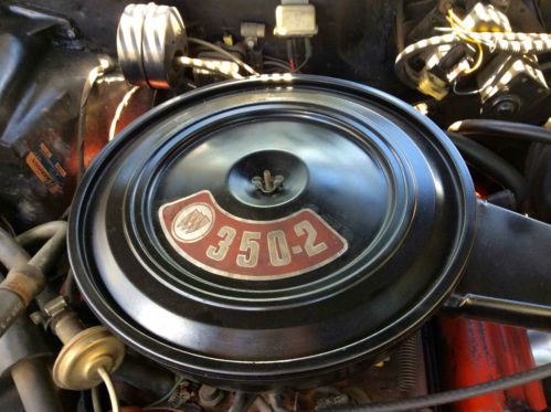 Classic 2dr Hardtop Coupe 8-cly. 350cid/155hp 2bbl. Assembled in Freemont, CA production number 123110 Color: Sunburst Yellow/Interior: Saddle. A sweet old lady kept it professionally serviced and occasionally drove it to church. The paint is original with minor blemishes around the window seals. Repair in rear left corning of chrome bumper. Some color fading in seats. The engine is strong, clean and purrs like a kitten. The interior is flawless and all original. The car has great chrome and the body is straight as an arrow. The car has 47K original miles. Not 247K or 147K but 47K. No restoration needed! Ready to drive, soup up, whatever... If you are interested then don't let this one get away or you will regret it!