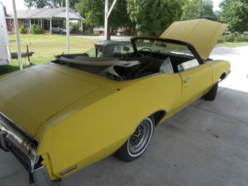 1972 skylark conv. this car is rusty. but floor pans look ok . Top work really good lines up good to close. power windows work. front disc brakes car do stop. Rebult motor starts up first try every time. tranny pulls and changes like it should. posi rear dont no if its 308 or 323 10 bolt. tilt ,A/C is all ther, no crakes in dash sport really steering wheel. 1971 front bumper in really good shape, grill has no cracks, has the 1972 only core suport cross bars.Crome around windows in really good shape ,wiper work , the car is all ther just needs restoring, HAVE THE 1972 PURCHASE ORDER. CLEAR TITLE IN HAND , MOTOR AN TRANS REBUILD PAPER, AN ALL THE RECIEPTS FOR ALL THE WORK ON CAR FROM 1972 !WOW! CALL MIKE FOR MORE INFO 336 608 8400 CAR IS SOLD AT NO RESERVE