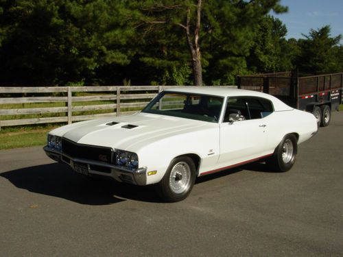 This is a project that I have just finished, it is not a high end original show car but a very very nice ProStreet Tribute version of a 71 Buick GS that you can drive on the street anywhere as well as the drag strip on weekends. I started with a body from Texas that is 100% Rust Free, all mechanical is new as well as paint, weather stripping, tires, headliner-carpet-sails & deck lid-rest of interior is original and in good condition, driver side of bench seat has a couple little nicks on lower side as can be seen in pic. Car has a very nice low side bar -for easy in & out- 6 point cage which was taken thru floor & trunk pans and welded to frame as it should be to tighten up the structure of car in order to handle and distribute the power which I estimate to be right at 600 HP, motor is a 455 bored .030 over with TRW fly cut pistons at 12:1 comp., steel heads ported & polished with TA stainless valves, valve springs & push rods, TA Roller cam-lifters-rocker arms & dbl. roller timing chain, TA rods & bolts & high vol. oil pump, TA Stage 1 aluminum intake & 800 Holly dbl. pumper with Paxton electric fuel pump mounted on frame just in front of stock gas tank with 1/2" aluminum line back to front, MSD Dist. & 6AL Box for firepower, TA 2" headers with 3" exhaust along with Flow Master mufflers, 350 Turbo trans worked to handle power with ATI 4000 Stall, not a manual valve body so your girl friend can drive this one, however it has a easy to use Hurst Qtr. Shifter and if she's inclined she just may be pulling them, LOL, 4 core radiator, shroud filled with stock fan along with electric fan set up which allows this motor to run at a consistent 170 deg., 12 Bolt GM rear with HD Eaton Posi, 32 spline axils with 5/8 studs & 410 gear, adj. upper rear control arms, car has new M/T ProStreet tires all 4 corners, 30X12.5 street slicks on rear, with this entire combination car will run 55 MPH at 3K RPM and again with a consistent 170 deg., Comp. Engineering shocks- 90/10 front & 50/50 rear, motor will run on pump gas with a heavy mixture of octain booster additive or min. of 30% racing fuel, this is to drive and enjoy, however if you are going to run it all out I recommend 100% Racing Fuel by all means. I could go on and on but I think you got it, this car is sweet, I have not installed interior door panels yet because I'm waiting on OPGI to send backing plates for arm rest-they are on back order. Car is 100% ready for you if this is your cup of tea, be ready for the ride cause it is bad A''''''