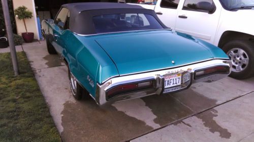 car was always covered, taken very good care of, Chevy 350 with TH350 transmission, currently having an tune up, rebuilt carburetor, replaced convertible top 1.5 years ago, custom stereo system, new headlights, paint has a few chips and several scratches and one small almost unnoticeable dent but still looks great, Waxed frequently, new rear shocks, new tires put on a year ago, new brake shoes and pads, changed transmission fluid, differential fluid two months ago, coolant flush 4 months ago, oil change every 1000-1500 miles, aftermarket alarm system, no a/c, heater works, interior in good shape except for normal wear in front and an inch tear on arm rest, windshield wipers stutter when turned off after use but still work.