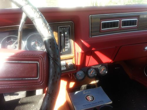 Here is a 1978 Buick Skylark Sport Coupe (Same body style as the Chevy Nova) Car comes equipped with Power Steering, Power Brakes, Factory Air Conditioning, Rear Window Defroster, Cassette Deck, Automatic Transmission, comes with a very rare 305 v-8 that runs very well most of these cars came with six cylinder engines. It has a set of Sunpro Gauges and a set of Aluminum American Racing Wheels, car comes with the original owners manual and the option list for this car. Car has a very good body and the paint and chrome is still pretty good considering the age, interior is pretty good in white with red exterior with factory pinstripe. Has the rare option of a vinyl Landau roof. Don't miss out on this soon to be collectors item, car is not currently not registered, extra front grille included.