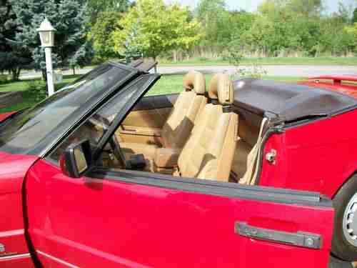 There is nothing like a beautiful fire engine red convertible and here is some rolling proof. The finish on this fine car is still glossy and does turn heads. There are 3 or so parking lot dings on the passenger door and the leather seats could use some attention. The passenger side rear insert needs to be re-clear-coated. I just replaced the air conditioning compressor and it works beautifully and has a one-year warranty. The car has just less then 125,000 summer-driven miles and drives very well. I have put 20,000 very enjoyable miles on it in the 5 summers I have had it. It has a new battery in addition to all the regular upkeep it has received with me. Brakes are good, lights all work, tires are still at approx. 65%. The radio has some wiring short, as it only plays sporadically. I haven't bothered with it as I usually have the top down when driving it. Also will mention that the electric seats do not operate well at all. It is equipped with a tilt steering wheel. As you can see from pics, the dash has no cracks. The motor for connecting the hard top operates perfectly and I have recently replaced the motor for the automatic trunk lid. All in all, you're looking at a really nice looking and driving piece of motoring history. There have never been any engine issues and it runs and drives very strong and feels wonderfully solid. I would not hesitate to drive this car cross-country.