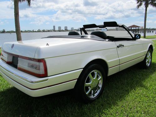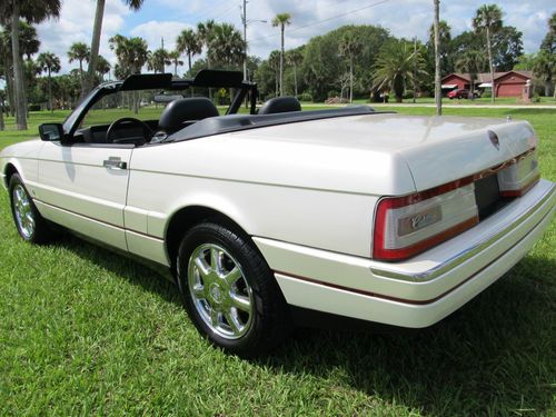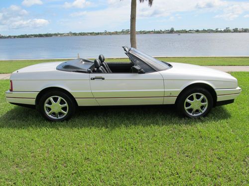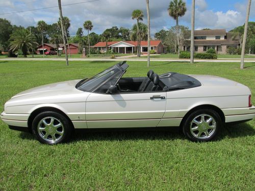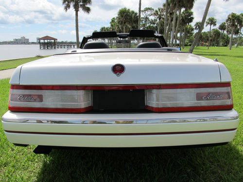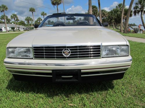 Thanks for looking at our beautiful Cadillac Allante. This car was owned by a local Woman who loved this car, always garaged it and really cared for it. The exterior is 100% original paint and does not have a mark on it. Near perfect exterior. None of the chrome inserts on the bumpers are dinged. No bumper scuffs. Look at the pictures. The wheels are excellent. The convertible top is Black and shows like new and functions perfectly.The interior is very, very clean with less than normal wear. No broken parts. It has factory Allante floor mats. Mechanically this car is excellent! No warning lights on. Never saw one with no lights. The A/C is ice cold and functioning perfectly. The radio is working correctly. Both power seats work on all positions. Never saw that either. This Allante hits the road brand new and can be driven anywhere. Lot of bang for the buck. Feel free to call us at 1 386 295 3886 or 295 3301 and we will try to answer your questions. Thanks and Good Luck!