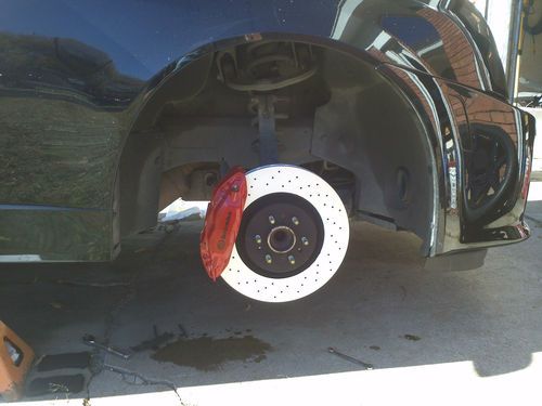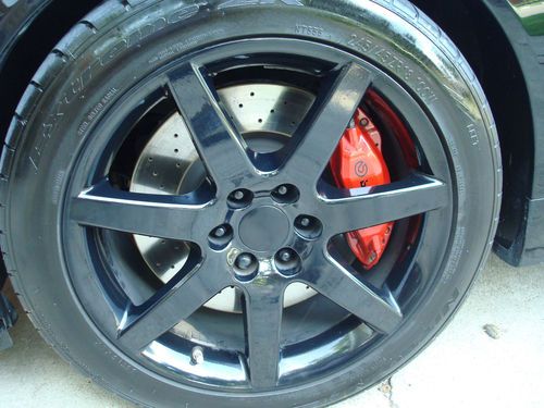 GM performance DRILLED front and rear rotors, EBC red stuff front and rear brake pads, Powder coated Front and rear BREMBO brake calipers, Powder coated stock wheels with new Tire pressure sensors and painted center caps, new black lug nuts with wheel locks, and Nitto 555s 245s up front and 275s out back.