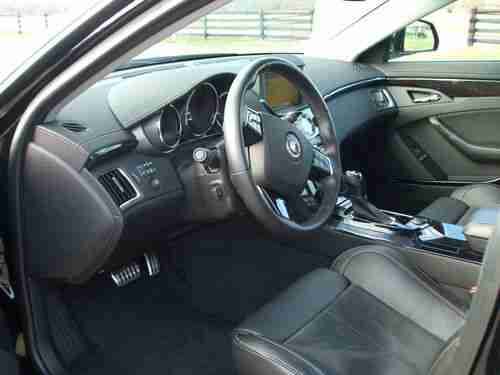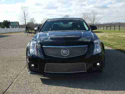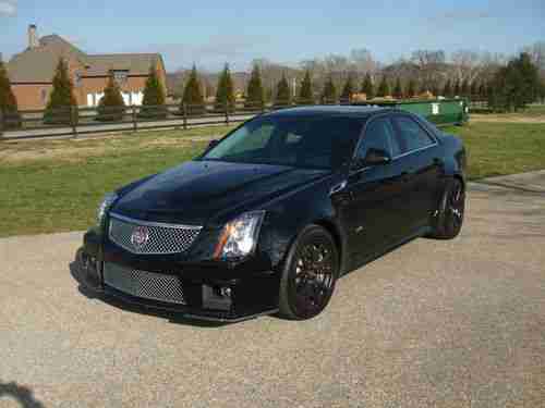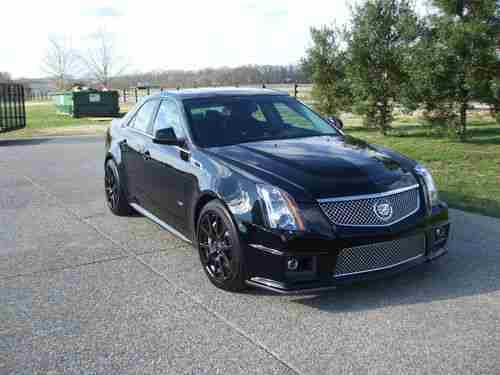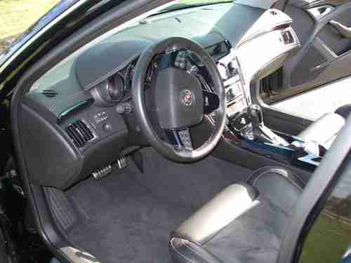 2012 CADILLAC CTS-V 4-DOOR SEDAN. BLACK RAVEN EXTERIOR WITH EBONY (BLACK) INTERIOR AND BLACK FINISH WHEELS - INCREDIBLE PACKAGE. EQUIPPED WITH 6.2 LITER SUPERCHARGED V8 /556, 6-SPEED AUTOMATIC TRANS, NAVIGATION SYSTEM, REARVIEW CAMERA, GLASS ULTRAVIEW SUNROOF, 19 INCH POLISHED ALUMINUM WHEELS (BLACK FINISH), IPOD/USB INTEGRATION, ONLY 4,100 ORIGINAL OWNER NO SMOKER MILES. CAR IS LIKE NEW, GARAGE COVERED AND STORED SINCE NEW. FULL FACTORY WARRANTY REMAINS. DRIVES, SMELLS AND RUNS LIKE BRAND NEW CAR. ONLY EXCEPTION IS VERY MINOR CURB SCRAPE ON RIGHT FRONT WHEEL (SEE PICTURE).