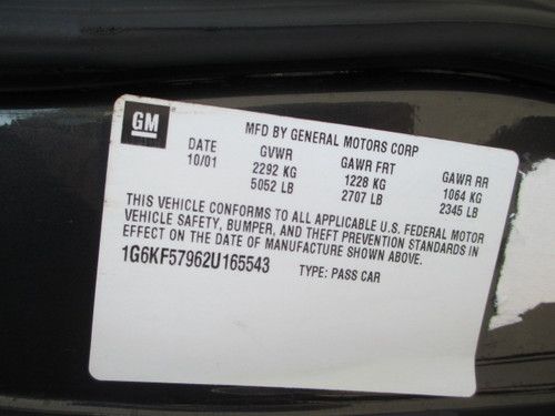 3-Point Rear Seat Belts 4-Wheel Disc Brakes AM/FM Stereo Accent Stripes Adjustable Steering Wheel Air Bag Air Dam Air conditioning Anti-Skid Control Anti-lock brakes Auto-Dimming Rearview Mirror Automatic Transmission Body Side Moldings Bose Sound System Break-Resistant Glass CD player California Emissions Compliant Cassette player Center Arm Rest Center Console Chrome Wheels Climate Control Clock Compass/Temp. Gauge Coolant Temp. Gauge Courtesy Lights Cruise control Cup Holders Daytime Running Lights Digital Clock Digital Instruments Driver airbag Dual Exhaust Dual Power Mirrors Energy-Absorbing Panels Floor Mats Fog Lamps Front Bucket Seats Halogen Headlamps Head Protection System (Airbags) Heated Mirrors Heated Seats HomeLink Interior Hood Release | Interval Wipers Keyless Entry Leather Steering Wheel Leather Upholstery Leather seats Map Light Memory Seat(s) Metallic Paint OnStar Panic Button Passenger Climate Control Passenger airbag Passive Restraint System Power Brakes Power Lumbar Support Power Mirrors Power Steering Power Trunk Power locks Power seats Power windows Premium Sound System Radial tires Rear Air Conditioning Rear Defroster Rear seat fold-down armrest Rear-Wheel Drive Reclining Bucket Seats Remote Fuel Door Remote Trunk Lid Security System Side Impact Protection (SIPS) Side airbags Sport Steering Wheel Steering Wheel Controls Tachometer Telescoping Steering Third Brake Light Tilt Steering Column Tinted Glass Traction Control Trip Odometer Wood Trim |