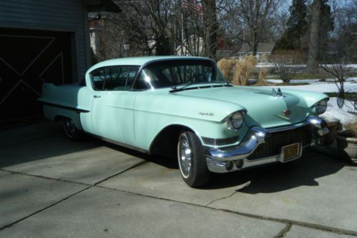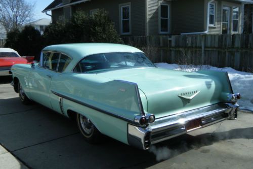 1957 Cadillac Coupe Deville. This is a rust free original car in storage since 1984. This car was bought from the original owners in Arizona in 1984. The car is all original and totally rust free. When bought the car was equipped with new tires, brakes, exhaust and driven over 800 miles where it was put into a private museum. I bought the car from the museum last year. Upon getting the car I rebuilt the engine, water pump, boiled out the radiator, and cleaned the gas tank. All lights, radio, antenna, seats, and windows work. The doors close like a new car. All the rubber seals are original and still soft. This is the nicest original car I have ever seen. The original interior is beautiful with the exception of some minor wear on the front seat by the driver. I might take part trade on a 54 to 64 unrestored Cadillac Eldorado, or other interesting trade. Sold where is as is. Make your inspections and ask your questions before you bid. Shipping is buyer’s responsibility, but I will help arrange. Payment in full due within 7 days of auction end by bank transfer. Please e-mail or call 630-542-0031 with questions. Thanks for Looking! |