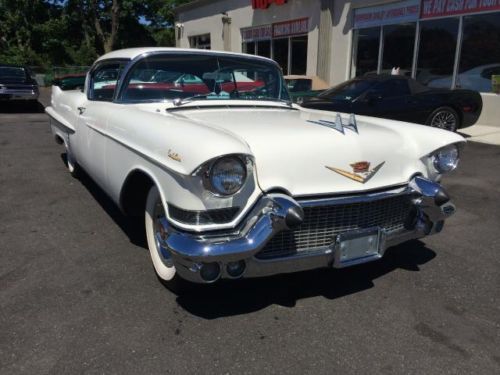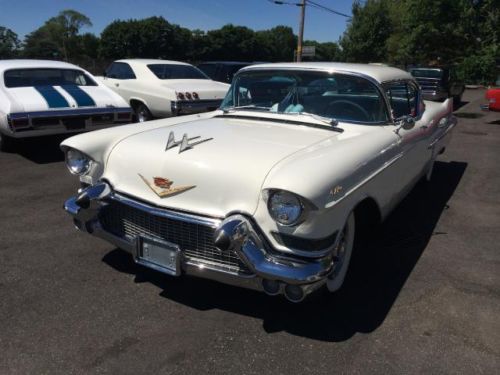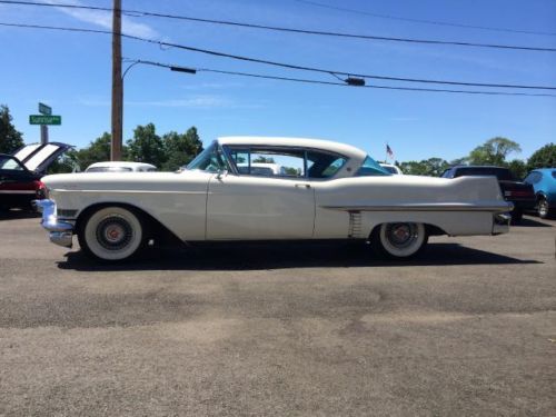 ***** CLASSIC 1957 CADILLAC COUPE DEVILLE ***** EXCELLENT CONDITION INSIDE AND OUT! CADILLAC CLUB SHOW WINNER 1ST IN CLASS !!! RUNS AND DRIVES LIKE A DREAM !!! ACTUALLY FLOATS DOWN THE ROAD !!! BLUE CLOTH INTERIOR WITH WHITE LEATHER TRIM STUNNING IN WHITE COMPLETELY RESTORED INTERIOR AND DONE RIGHT ALL CHROME IS IN GREAT SHAPE !!! CUSTOM RADIO IN GLOVE BOX AND ORIGINAL IN DASH NOTHING LIKE IT ON THE ROAD !!! OVERALL THIS IS A BEAUTIFUL CADILLAC , IT HAS BEEN GONE THROUGH MECHANICALLY BY A LOCAL SHOP , NEW RADIATOR, NEW TRANSMISSION, JUST INSPECTED BY A LIC NYS INSPECTION STATION . A VERY NICE LOCAL TROPHY WINNER, EVEN THE TRUNK IS CARPETED AND DETAILED. THE CAR IS OVER 50 YEARS OLD AND RESTORED 10 YEARS AGO SO PLEASE DO NOT EXPECT A 100 POINT CAR, MAY HAVE SOME MINOR BLEMISHES BUT NOTHING TO MENTION. I ENCOURAGE YOU TO COME SEE AND DRIVE THIS VEHICLE BEFORE BIDDING! A $1000 DEPOSIT DUE WITHIN 48 HOURS AND FULL PAYMENT WITHIN 5 BUSINESS DAYS!