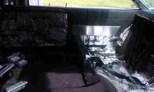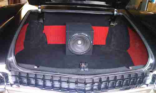 Interior - Custom Interior; floor and foor and quarter sides dynomatted. Speedometer, gas and clock gauge do not work. Water temp guage is Mooneyes. Most interior stainless steel trims have been repolished. Custom sound system with subwoofer in trunk, custom trunk panels to match interior.