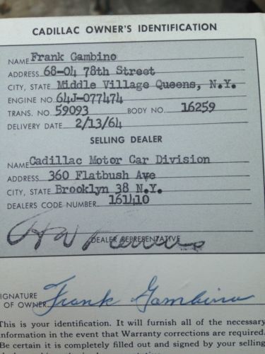 Project car. Engine is solid. Body has some rust. Interior needs to be redone. Original owner was Frank Gambino who bought it new in 2/13/64