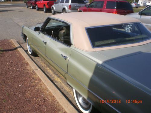 Offered is a 1969 Cadillac Sedan DeVille. The color is green with green brocade interior with beige vinyl top. Original 1969 Inspection Sticker from January 1969 still on windshield. All original brochures and paperwork included along with owner's manual. Original title date sold in Pa. 3/24/70. Sold with 67,000 original miles on 9/29/04 to 2nd owner. Recently purchased with only 81,000 original miles. White wall tires. Never smoked in. Absolutely beautiful. A real head turner. For more information please contact Joe at 732-208-3600. Thank you for looking. NOTE: more photos to come. |
