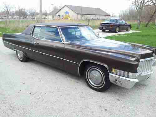 ONE OWNER!!! MINT 1970 Cadillac Coupe Deville with 44K orginal miles .RUNS GREAT!!! all orginal and everything works . Power doors, All 4 power windows work fine, Power seats. Interior is in great condition, interior headliner is perfect, dash and door panels like new. All electrical is working perfect. Paint still shines, Exterior top like new, orginal panel skirts, hub caps, even orginal jack and spare in trunk. 472 engine runs strong. Great sounding Flowmaster duals. Also as a bonus i have a orginal passenger side door mirror ill add in. no dents or dings THIS A BEAUTIFUL CAR , my wife and i love this car and hate to sell it, you will not be dissapointed. From 1 to 10 this car is a 8.5 only three things keep it from a 10. (1) front bumper needs rechroming (2) needs a ball joint on driver side, clicks when turn (3) need manifold gasket on passenger side THATS IT!!! Orginal clean title in hand...THANK YOU GOD BLESS.