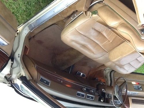 1976 Cadillac Coupe Deville 2 door. Body and interior are in very good condition. Body is light tan in color with a dark tan half vinyl top. Everything is original on this vehicle. Power Steering, power brakes. Undercarriage,frame and floors are spotless. No rust, There is a scratch on the passenger side door and while in storage there was something placed on the trunk lid that took the paint off which you can see in the photos. This car has been in storage for the past 5 years. I have recently taken it out of storage and got it running. I have installed a new battery, new plugs and plug wires. The heater core has been bypassed due to it leaking. Power windows work very good, up and down quickly. Tires are in like new condition. Not shown in photos but this car has a current up to date Virginia state inspection sticker. Also license plates are not included in this auction. Car runs and drives excellent. Please message me or phone 540-810-5920 if you have any questions before bidding. Thank you and Happy bidding.