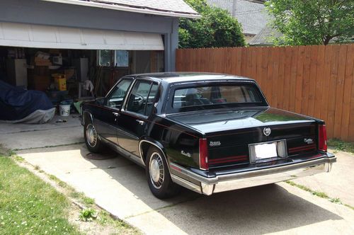 1988 Cadillac Sedan DeVille - 4.5L V8 - 102k miles, black with the "Elegante Pkg" offered on this model. This car is in excellent condition with no rust and very nice original paint with very few minor flaws. Dual power seats all work. The antenna is broke, but I have a new one I will include that I haven't installed. Small trim piece front driver side is missing. Repaired crack driver side interior door panel. Don't be afraid of the engine size, the gas mileage on the highway is 26 MPG and runs perfect with NO LEAKS from the engine. There is NO RUST on it. Last summer the air conditioning had $1,500 put into the air conditioning. This car is practically mint and and it has been garaged it's entire life and was driven by an old lady who babied it.. You have to see it in person and drive it to appreciate how nice it is. Don't waste your time buying a cheaper piece of junk then have to put a ton of money into it, this car needs nothing and won't need anything anytime soon. This car is one of a kind.