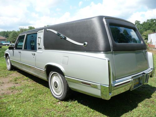 1991 cadillac fleetwood / deville style, front wheel drive s&s hearse, 51,000 orig miles, silver exterior with blue interior... runs and drives good, has the 4.9 port fuel injected v8 . ice cold air conditioning.... has chip / circle crack on windshield, just happened on the highway last week, its pa inspected and ready to be used for service...... overall in great shape for 23 years old ! interior is excellent, exterior has a few knicks, but even when dirty the silver paint shines so nice ! the padded top is perfect, everything works as it should. drive it home worry free.