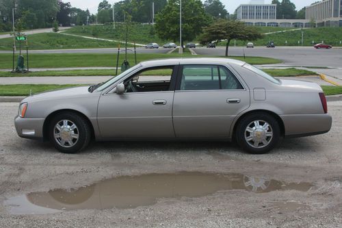 2000 Cadillac Deville. 116,000 miles. Gold exterior with tan leather interior. Both the exterior and interior are in good shape for the year. The car is clean with no major cosmetic dents, rips, or tears. There are some minor scratches, but considering the age, the car is in good shape. There are no major visible rust spots. The car was previously titled in the south before I bought it - there is no visible rust on the car. The car has a 6 disc CD changer, power everything (locks, seats, etc.), and the AC blows ICE cold. The Cadillac also has remote-keyless entry that works fine.