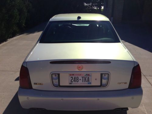 This is a beautiful 2004 Cadillac DTS, fully-loaded, with pearl white paint and all gold cadillac emblems. It has extremely low miles for age at 74,000 miles and has been in excellent care by its only 2 owners. No accidents, no issues ever. Regular oil changes and is garage kept. Has premium 19+ wheels (with gold cadillac emblems in center) all in excellent condition; along with nav, heated steering, heated and cooled front seats, heated back seats, stabillitrak, 6 disc CD changer, sun-roof, parking sensors, and ANY other option available for that year. There is a $2000+ sub and amp system in the trunk that I will throw in for another $750 if interested.