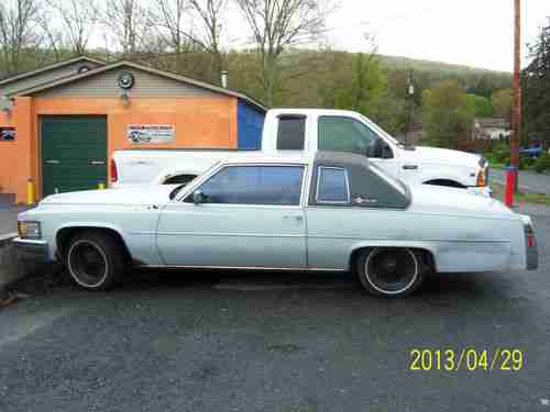 UP FOR AUCTION I HAVE A 1979 COUPE DE'VILLE. CAR IS IN DECENT SHAPE FOR THE YEAR. FRAME IS SOLID FRONT TO REAR. MINOR RUST ON BODY HERE AND THERE, NOTHING MAJOR. FLOOR IS SOLID. COMES WITH THE BIG BLOCK 7.0L ENGINE AND STRONG AUTOMATIC TRANSMISSION. SHOWS 77,447 MILES ON CAR, I ASSUME TO BE TRUE MILES, TITLE SHOWS 77,694. HONEST MISTAKE I'M SURE SINCE CAR WAS NOT DRIVEN BY LAST OWNER. I OWN AND OPERATE A REPAIR SHOP IN MY HOMETOWN. A CUSTOMER DROPPED THIS OFF WITH THE GOOD INTENTION OF RESTORING IT BACK TO IT'S ORIGINAL GLORY. A YEAR AND A FEW BUCKS LATER CAR SITS AT MY SHOP AWAITING IT'S COMEBACK. LONG STORY SHORT.....TITLE IS CLEAN AND CLEAR AND IN MY HAND AWAITING IT'S NEW OWNER. WHILE AT MY SHOP WE INSTALLED NEW FRONT BRAKE CALIPERS AND PADS, ROTORS WERE IN GOOD SHAPE, NEW REAR WHEEL CYLINDERS, ALL NEW REAR BRAKE HARDWARE AND SHOES, REPLACED REAR BRAKE LINES, REAR DIFF SEALS, NEW WATER PUMP, SPARK PLUGS, CAP AND ROTOR, PCV VALVE, NEW BELTS, NEW ALTERNATOR.....ETC. I'M SURE I FORGET A FEW PARTS, BEEN A WHILE SINCE I WORKED ON IT. CAR DOES START AND RUN BUT REAR BRAKES NEED TO BE RE-INSTALLED YET...THAT'S WHERE WE LEFT OFF AT. BUT I'LL TRY AND HAVE THAT DONE BEFORE AUCTION'S END. CAR DOES NOT HAVE AN EXHAUST SYSTEM. WAS REMOVED AT THE Y PIPE MAKING ROOM FOR THE TRUE DUAL EXHAUST THAT NEVER HAPPENED. I WOULD RECOMMEND THE WINNER OF THIS AUCTION HAS VEHICLE TOWED FROM IT'S CURRENT LOCATION SINCE I HAVE NOT INSPECTED THIS VEHICLE TO ENSURE IT'S SAFE TO OPERATE ON OUR ROADWAYS. VEHICLE IS BEING SOLD AS IS. I ENCOURAGE YOU TO STOP BY MY SHOP AND INSPECT THIS CAR BEFORE YOU BID ON IT SINCE ALL SALES ARE FINAL, SOLD AS IS. CURRENTLY LOCATED IN BETHLEHEM, PA 18015. IF YOU WISH TO VIEW PRIOR TO PLACING YOUR BID EMAIL ME THROUGH EBAY SO WE CAN COME TO AN AGREEMENT. THANK YOU FOR VIEWING MY AUCTION....BID TO WIN...BID OFTEN :0)