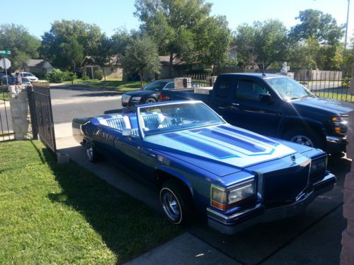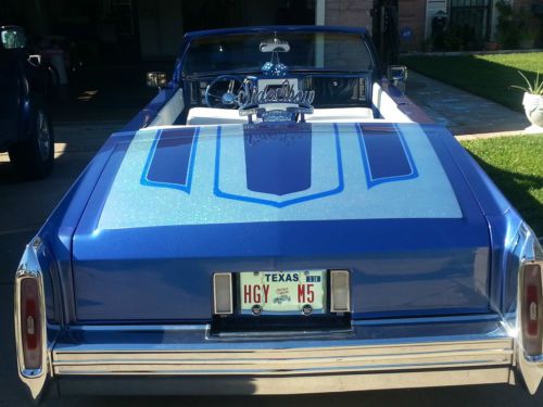 I am selling a custom 1984 cadillac coupe deville chop top. I really hope the pictures will answer any questions you might have because their is to many things to list on the car.It has been built from the frame up and has a Chevy 350 four bolt main sitting pretty under the hood and dual flowmasters having it sound like a beast. It is my weekend cruiser. If lowriding is not your style then you could throw a new set of rims and make her your own. I am pretty much guessing on the milage due to no milage gauge. Only have drove it a had full of times and runs like a champ!!