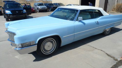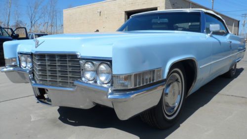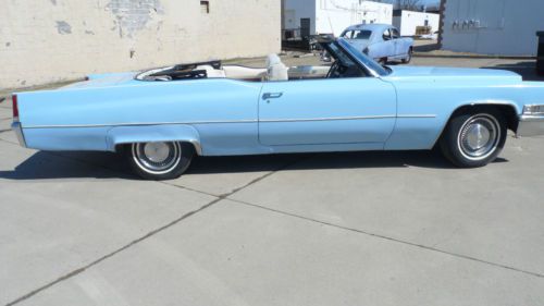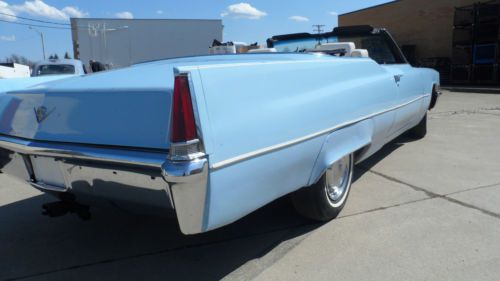 Hello and thanks for stopping to check out our 1969 Cadillac Coupe DeVille Convertible! The car has the following options: 3,999 ACTUAL MILES!! V-8 Engine/Automatic Transmission Power Steering and Brakes AM/FM/8-Track Stereo Power Windows & Locks Power Seat Power Convertible Top We bought this Cadillac with the odometer reading the mileage shown, and the title shows it as actual, and that’s the way we’re selling it. We feel that the miles may not be correct, but it’s not up to us to decide. We are selling it with actual miles, the same way we bought it. This was a barn find. The gentleman who owned it used it as a parade vehicle in the 80’s. Then, after he passed away, it sat for many, many years in the garage. His grandson, who inherited the car, who we bought it from, tuned it up two years ago and then found that the gas tank was leaking. He bought a replacement that is currently in the trunk, and it needs to be installed. The straps, hoses, and tank are all ready to be installed. We are a wholesale dealer and purchased the car and decided we didn’t want to send it to a shop and start spending money on belts, hoses, etc., and end up with a $1,000 bill. So, what we did is had the car delivered to us, then bought a battery and installed it. With a little starting fluid, it started right up and sounded good. We added brake fluid and now the brakes seem to work properly. All four windows work. The power top works. It needs for someone to buy it, have the tank installed, and have someone give a thorough once over before it can be driven every day. We did not just want to put the tank on without having the entire car serviced for safety. The engine sounds great and I’m sure the transmission will shift fine. The underneath could use a sandblasting and undercoating, but is in very good shape for 45 years old. We believe the car may have been repainted because we don’t believe sky blue was a factory color in 1969. The top is in great shape, as is the interior. With just a little bit of work, this car will make a great driver for some lucky person. The tires on it are in good shape, as well. We guarantee you can hear the car run if you want to come out and check it before the auction ends. The body on the car really does photograph very well. I’m sure that once the car is back on the road, you’ll get a lot of looks going up and down the avenue. If someone buys this car to restore to new condition, that will be their choice, but it can be done. We just like it a lot and want to be as straight-forward and honest as possible. The new owner will get a great piece of American history that they can enjoy for many years to come. All the chrome on the car is very solid. There is a box of extra parts that come with it, including two new shocks. We invite all interested parties to come out and see it in person before bidding. It’s definitely worth looking at if you’re serious about getting a classic Cadillac! Be sure to check out more pictures of this classic Cadillac at the following link! CLICK HERE FOR PICTURES ON PHOTOBUCKET! The car must be paid for within 48 hours after the end of the auction in cash or by wire transfer!! This is an as-is vehicle, which means that once you buy it, you own it with all faults (known or unknown). This is a no-reserve auction, which means that the last highest bidder when the auction is over will win the car. Every time you bid on the car keep in mind that you have an opportunity to be the owner, so your bid means something. We encourage all bidders to stop out, personally examine the car and drive it for themselves. If you can’t personally make it out to check out this vehicle, simply find a local mechanic to look at the vehicle and give you a personal report on the condition. We need the car paid for within 48 hours, as stated above, either by cash or wire transfer, after the auction is over. We would like the car picked up from our lot within 7 days of auction ending. There will be a $100 paperwork fee added on to the final sale price of the vehicle. If you need a 30-day tag, it’s $18.50. We handle the transfer of the title. We will also have to collect the tax for your county if you live in one of the following states: Arizona, California, Florida, Indiana, Massachusetts, Michigan, Ohio, South Carolina or Washington. We will not pay any shipping fees, but we would be glad to assist your shipper in picking up your vehicle. If you have any questions, call Stan at 216-598-7011. Good luck bidding! |