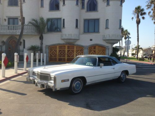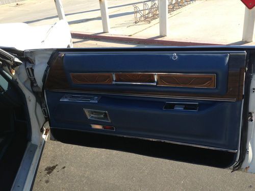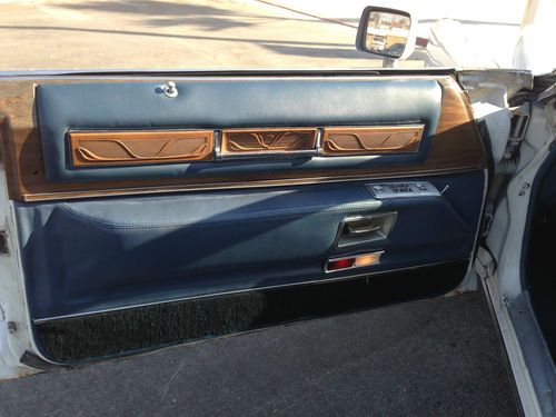 FOR SALE 1975 CADDILLAC ELDORADO CONVERTIBLE WHILE WITH BLUE INTEROR , THE CAR WAS PARKED FOR 3YEARS DUE TO THE PREVIOUS OWNER PASSING AWAY,WILL NEED A TUNE UP AND A MUFLER, STRATS RIGHT UP AND RUNS, IT HAS NEW TOP WITH GLASS WINDOW, GOOD PAINTWITHOUT A SCRATCH, TRANNY, INTERIOR PANNELS, CARPET,TIRES BRAKES ALL IN GOOD SHAPE,NOT SURE ABOUT THE MILAGE, IT HAS A FIVE DIGIT SPEEDO. THE CAR IS FOR SALE LOCALLY , I RESERVE THE RIGHT TO ACCEPT ANY OUTSIDE OFFER. PLEASE EMAIL ME WITH ANY QUESTIONS,CAR HAS CURRENT TAGS AND REGISTRATION. |