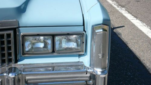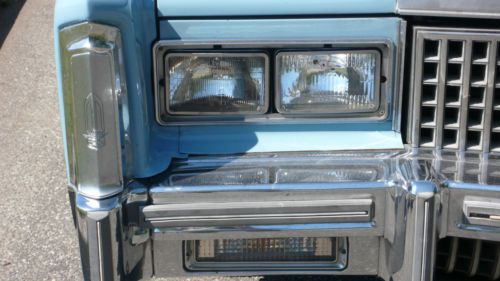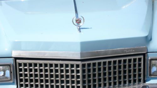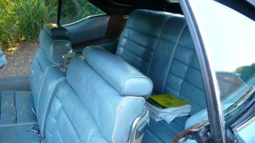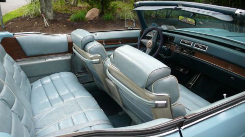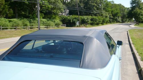 The 1975 Cadillac Eldorado Convertible features a 500 c i motor, front wheel drive, automatic transmission, plush leather seating for 6, 4 wheel independent suspension, power windows/locks and power top. The car is in very good driver condition although it will do very nicely in a show. The gorgeous Baby Blue paint is shiny but does have swirl marks from many years of polishing. The Blue Leather seats are plush with no rips or tears - there are some crack marks. Carpeting is also Blue and in excellent condition. The top is Blue and in excellent condition with no tears or rips and an excellent rear window - includes the parade fiberglas boot. The chrome is very good, but does have some pitting as would be expected. The air conditioning has been retrofitted with a new system using 134a freon and blows nice and cold. All the windows go up/down, all the lights work as they should.