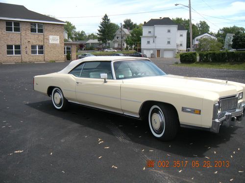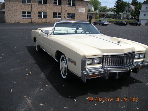 1976 Cadillac Eldoardo Convertible with 28,500 mlies ( not 128,000 ) in beautiful condition. The interior is all original with NO rips or tears. Everything in the car works perfect, execept the clock.The tires are brand new with an estimated 75 miles on them. The exterior is also in GREAT shape. You will notice in the pictures that the wooden inlay in the steering whell and the orginal floor mats are still intact..The vechile also has the rare parade booth. The engine and transmisson are in perfect working order . Please before bidding have the car inspected you will not be disappointed.