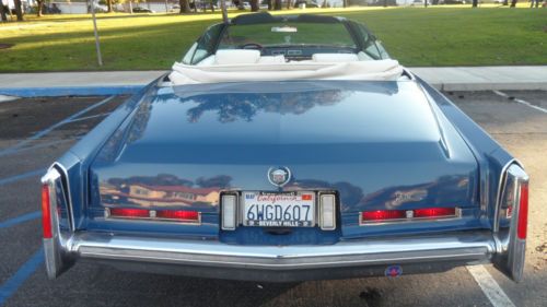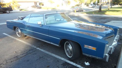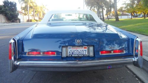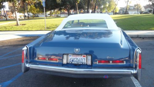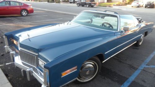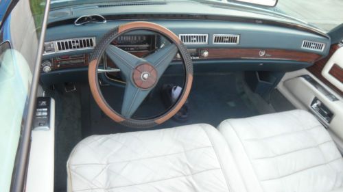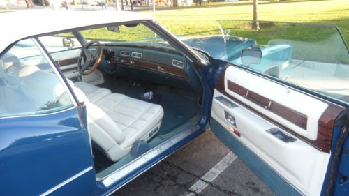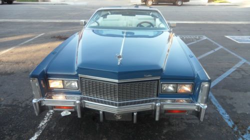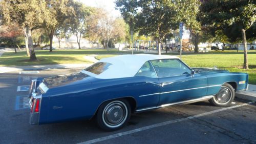 This auction is for a 1976 Cadillac Eldorado Convertible with original 76,510 miles. This car looks and runs great. The fuel injection motor is strong with transmission shifting smoothly. The white leather interior looks great. The exterior paint is glossy rare deep ocean blue color in excellent condition (no dents or scratches) with new white color top in good working condition matching the interior. The car's original hubcaps are polished.