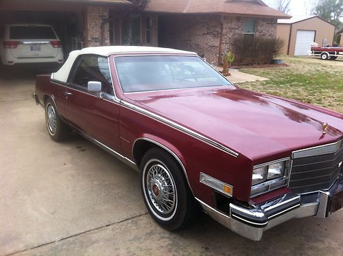 Attention collectors or Cadillac lovers!! Only 3300 of these were sold. 1984 Cadillac Eldorado Biarritz, convertable. Runs and drives great, Low miles, . two owner car, needs minor cosmetic work, missing or weathered front and rear bumper fillers. See pics. The body is straight. Interior is good condition, soft leather. Thanks for looking, dont let this one go its a dream car and classic piece of history.....250 CID V-8 Front wheel drive. tires in good condition clear title.